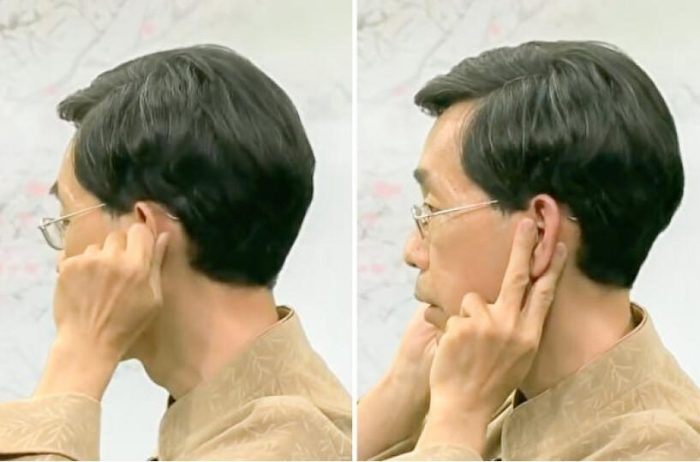 Pour effectuer cette technique, il faut d’abord palper la zone située derrière et au-dessus de l’oreille, ainsi qu’à la lisière des cheveux, à la recherche de petits nodules tendus ou de points sensibles. Une fois repérés, on les masse et les « pince » horizontalement avec le pouce pour les assouplir et les détendre.