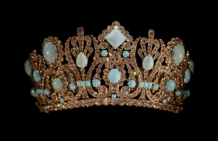 Le diadème de Marie-Louise, dont les émeraudes ont été remplacées par des turquoises, exposé au National Museum of Natural History de Washington. (Alvesgaspar/CC BY-SA 4.0)