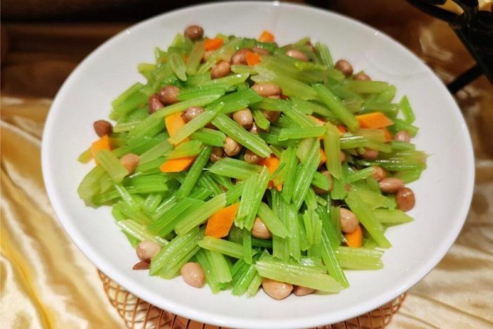 1. Salade de céleri : mélanger du radis ou de la carotte bouillis, du céleri et des cacahuètes cuites avec du sel, du sucre et de l’huile de sésame. Cette recette aide à abaisser la pression artérielle et convient aux personnes présentant une obésité abdominale ou de la constipation.