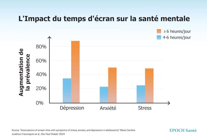 L’usage intensif des écrans est associé à un risque accru de troubles mentaux comme la dépression, l’anxiété, le trouble du déficit de l’attention avec hyperactivité (TDAH) et même les tendances suicidaires.