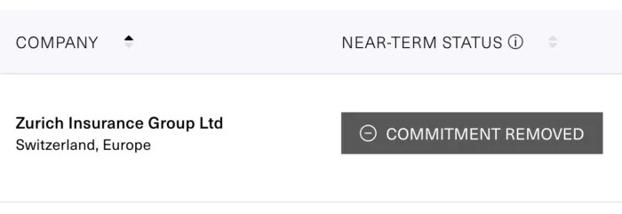 En Suisse, douze entreprises ont mis fin à leurs efforts pour atteindre les objectifs de la SBTi. Parmi elles figurent de grands groupes tels que Swiss Re, Zurich et Sulzer. L’initiative les répertorie encore parmi les quelque 12.900 inscriptions actuelles, mais avec le statut « Commitment removed », c’est-à-dire « engagement supprimé ».