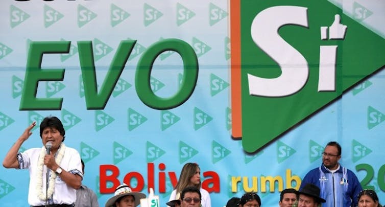 Evo Morales en campagne en 2016. (Huacapú/Flickr, CC BY-NC)