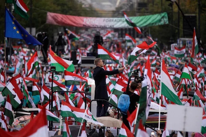 Encore membre du cercle restreint des proches de Viktor Orbán il y a quelques années , M. Magyar milite aujourd’hui pour un « changement de système » sous la bannière de son parti Tisza, fondé il y a seulement un an. Il a qualifié son rassemblement de « marche nationale ». Tisza se présente comme une formation sans idéologie et comme une force libérale de droite en faveur d’une politique centriste.