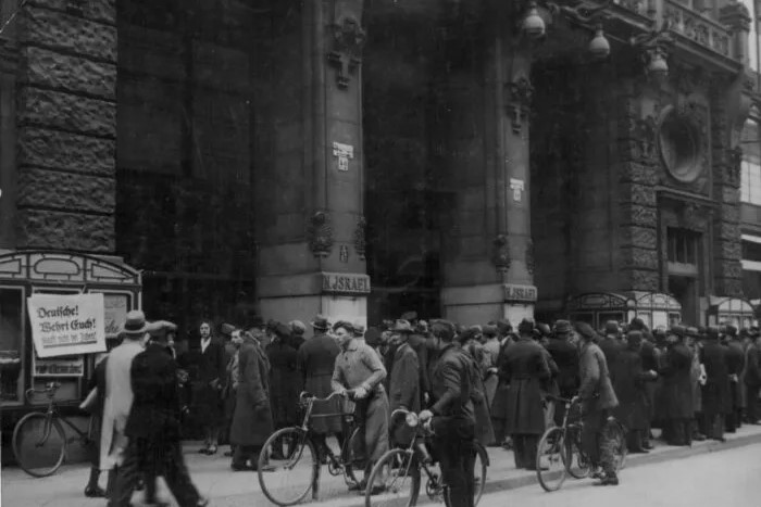 Un commerce juif pendant le boycott nazi, à Berlin, en Allemagne – 1933. (Archives). Photo : European/FPG/Getty Images
