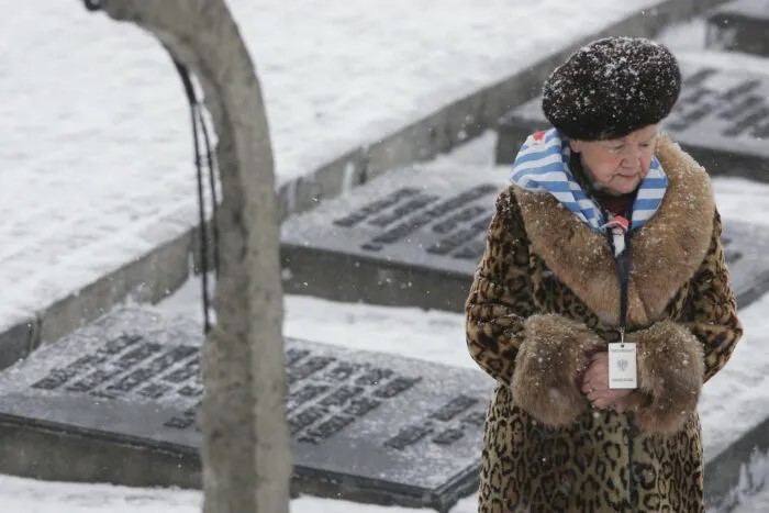 OSWIECIM, POLOGNE – 27 janvier : Un survivant d’Auschwitz passe devant le mémorial principal lors de la cérémonie commémorant le 60e anniversaire de la libération du camp par l’Armée rouge, sur le site de l’ancien camp de concentration d’Auschwitz II, également connu sous le nom de Birkenau, le 27 janvier 2005 à Oswiecim, en Pologne. Des survivants se sont tenus aux côtés de dirigeants du monde entier pour rendre un hommage solennel aux plus d’un million de personnes, majoritairement juives, assassinées par les nazis à Auschwitz. (Archives) Photo : Sean Gallup/Getty Images
