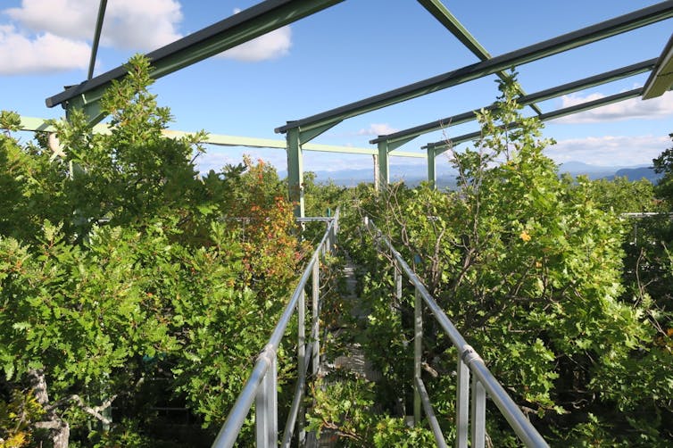 L’idée a été (et continue de l’être) de changer, sur une parcelle comprenant plusieurs dizaines d’arbres, le régime des précipitations en allongeant notamment la durée de la période de sécheresse évoquée plus haut. La biodiversité et le fonctionnement de l’écosystème de la parcelle soumise à ce changement climatique sont comparés à une parcelle « témoin ».