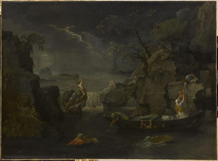 L’Hiver (« Le Déluge »), 1660–1664, par Nicolas Poussin. Le 9 juillet 1907, un déséquilibré lacéra la toile de sept coups de couteau. Musée du Louvre, Paris. (Stéphane Maréchalle/Musée du Louvre)