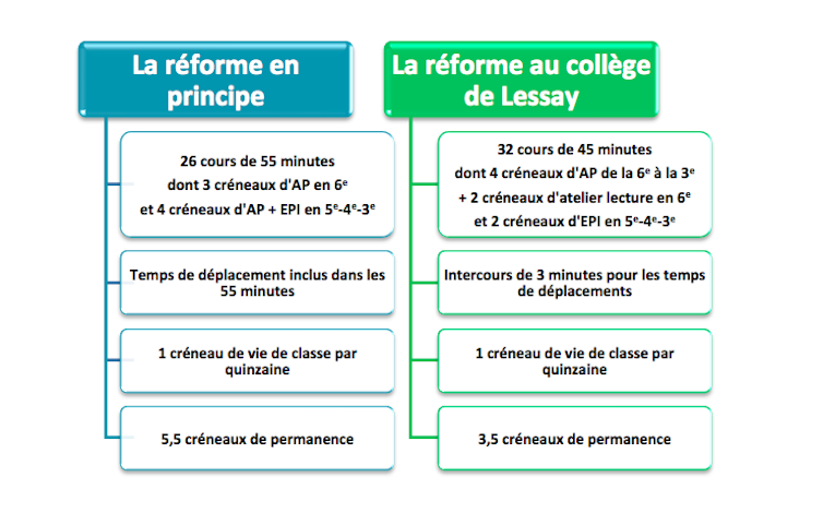Dans le cadre de la réforme du collège, l’établissement a fait le choix de modifier la structure horaire du collège afin de faire travailler les élèves le mieux et le plus possible.