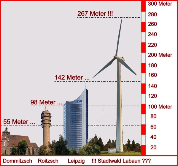 Selon le plan d’urbanisme de la ville de Dommitzsch, le parc éolien, avec ses éoliennes de 267 mètres de haut, devait offrir les avantages suivants :
