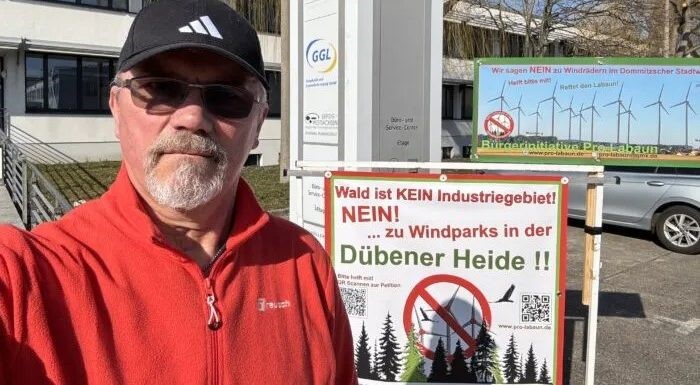 En juin 2024, M. Bergk a appris qu’un nouveau parc éolien comprenant onze éoliennes allait être construit dans la forêt municipale de Labaun. Cette forêt est située près de la ville de Dommitzsch, à proximité immédiate de la lande de Düben.